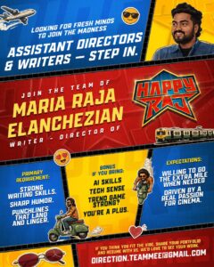 *உதவி இயக்குனர்கள், கதாசிரியர்களை Happy Raj இயக்குனர் அழைக்கிறார்!*